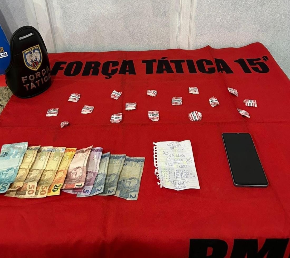 De acordo com a Polícia Militar, a equipe iniciou patrulhamento tático intensificado na área e conseguiu localizar e abordar o casal com as mesmas características repassadas na denúncia. Durante a abordagem, os militares encontraram materiais que confirmam a prática criminosa.