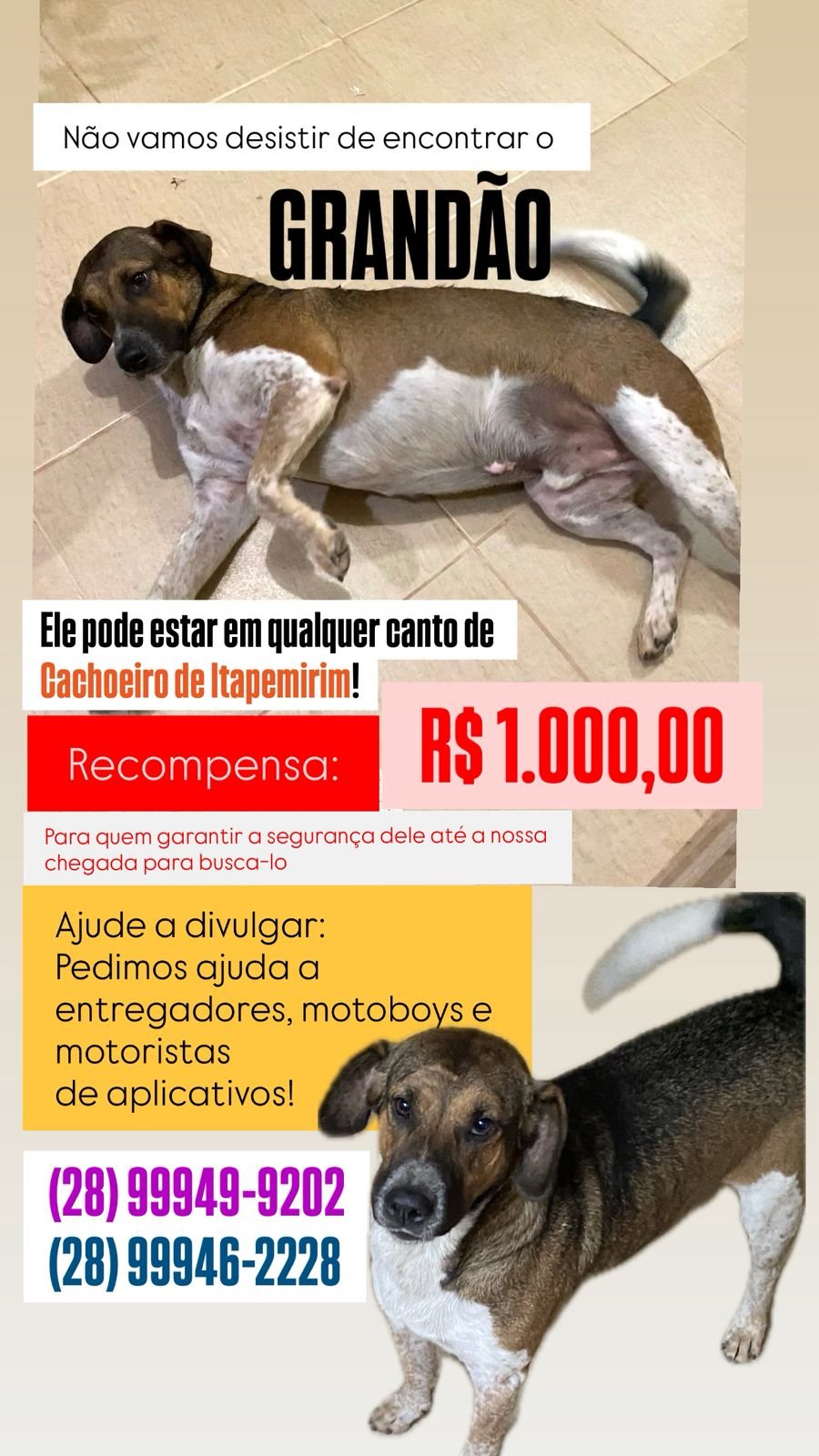 Um apelo mobiliza moradores de Cachoeiro de Itapemirim e região: encontrar o “Grandão”, um cão dócil e muito querido da comunidade de Aracuí, em Castelo, onde está localizado o Santuário de Aracuí.