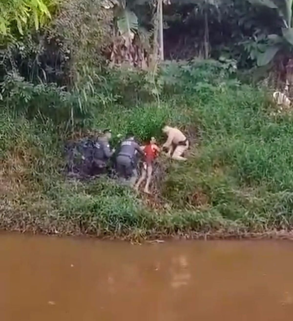 Equipes do 3º Batalhão de Polícia Militar iniciaram buscas após o furto e localizaram o suspeito, que tentou fugir para uma área de mata próxima a um rio.