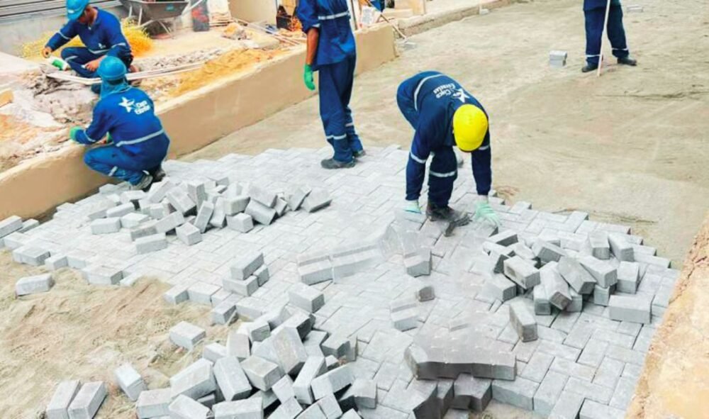O piso a ser aplicado é o intertravado (blocos de concreto), revestimento mais resistente, durável, indicado para vias de baixa velocidade e que ainda contribui para o escoamento da água da chuva, por ser permeável.