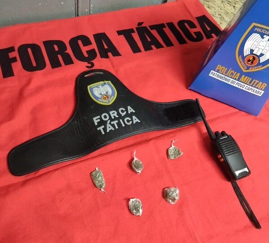 Diante da denúncia, a equipe reforçou o patrulhamento no bairro, abordou o suspeito e apreendeu o material ilícito.  Logo em seguida, os policiais encaminharam o homem até a 7ª Delegacia Regional em Cachoeiro de Itapemirim, onde também foram entregues o radiocomunicador e 5 buchas de maconha.